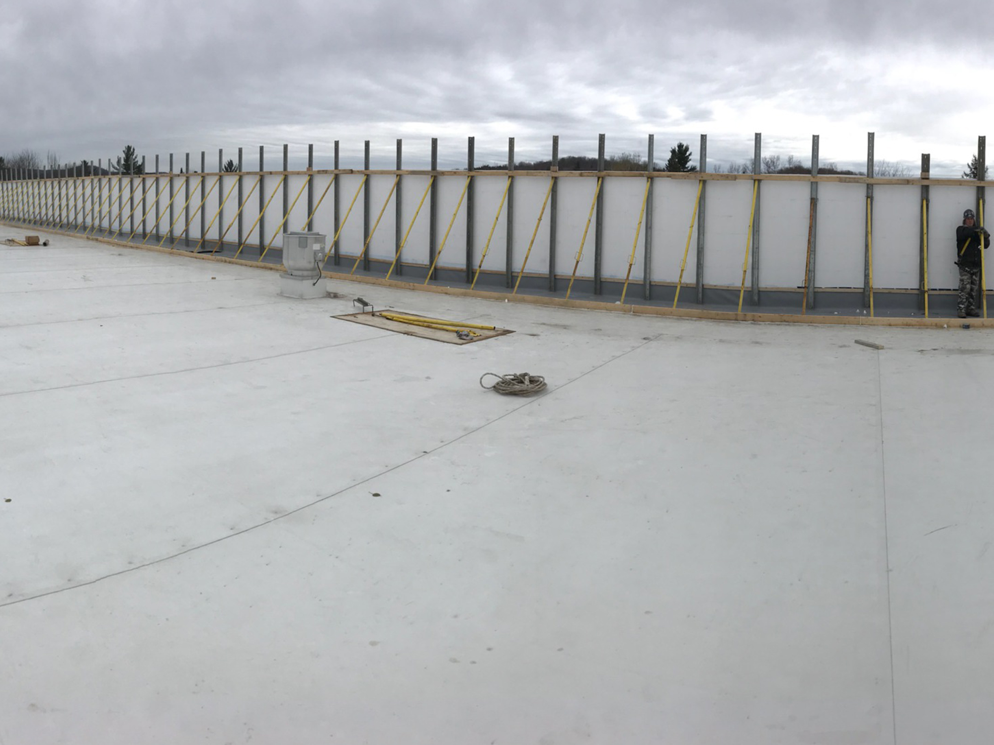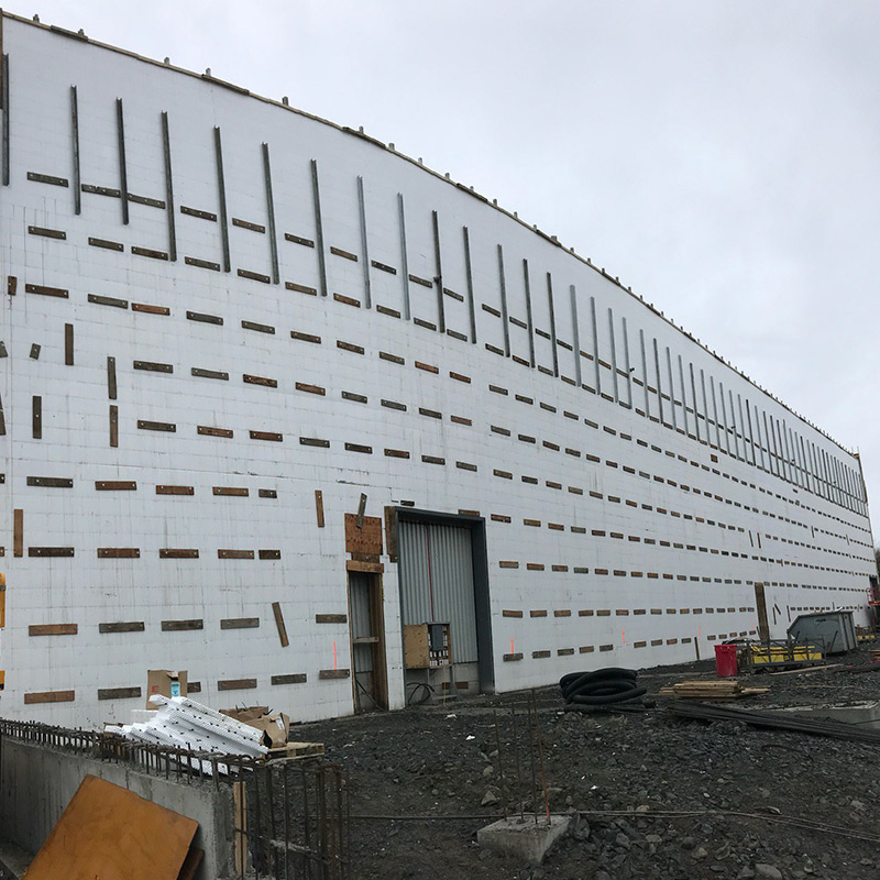 Construction 100% coffrage isolant du mur coupe-feu de l'industrie PPD Group à Waterville. Il s'agit d'une construction qui a nécessité 3 mois de travaux.